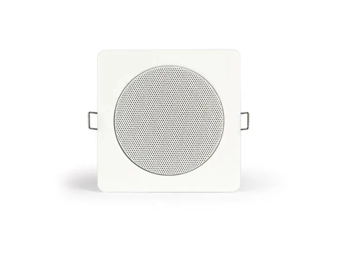 CARACTERÍSTICASAltavoz de techo con transformador de línea 100 V. Marco cuadrado y rejilla redonda.Tamaño foco halógeno.