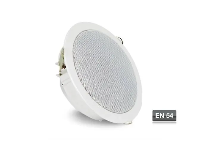 Altavoz de techo con transformador de línea 100 V, rejilla redonda y caja antifuego, 6 W RMS. Certificado EN 54.