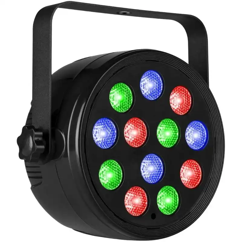 El Fuzzix PLF12 Party Par RGB DMX es la solución ideal para quienes buscan un equipo de iluminación compacto y eficiente, perfecto para fiestas, discotecas o eventos DJ. Este proyector PAR LED viene equipado con 12 LEDs RGB de 2W (4 rojos, 4 verdes y 4 azules), lo que permite crear una amplia gama de colores vivos y dinámicos. Gracias a su control DMX de 3 o 7 canales, podrás personalizar al máximo los efectos de iluminación, ya sea en modo automático o sincronizado con la música.