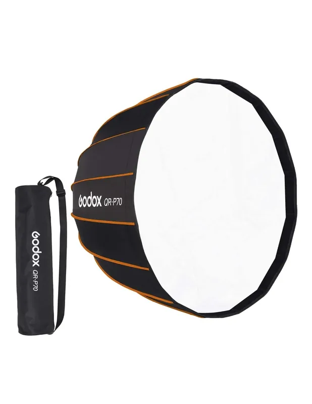 El interior de la Softbox QR-P70 está fabricado con tejido reflectante plata e incluye difusor interno y difusor externo.