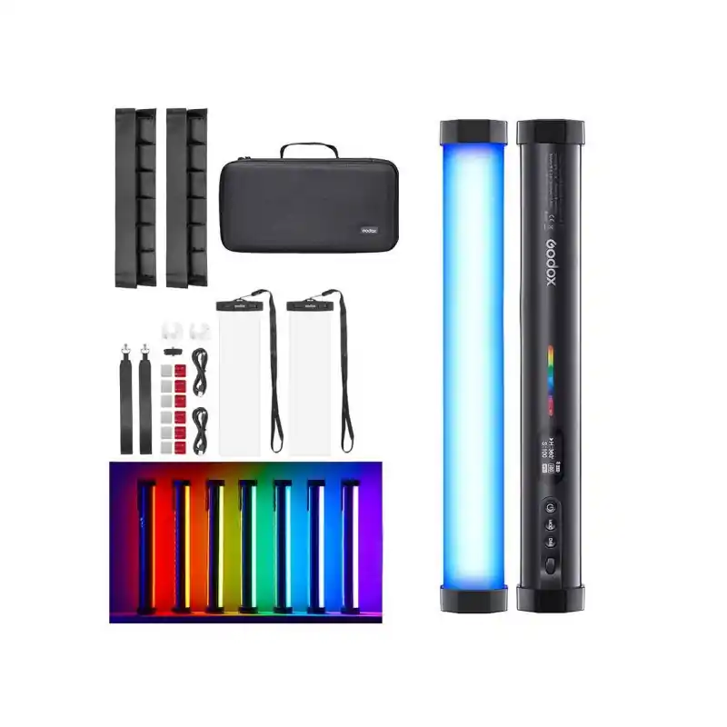 Este versátil kit de 2 luces de tubo de luz LED TL30 RGB de Godox incluye un par de tubos de luz LED TL30 con una variedad de accesorios en un estuche de transporte compacto para adaptarse a una amplia gama de aplicaciones de iluminación. Se incluyen rejillas, un acoplador de tubo de luz y clips, por lo que este kit es una excelente opción para todo, desde aplicaciones de mesa y cámara web hasta iluminación de acento para fotografía fija y de video.