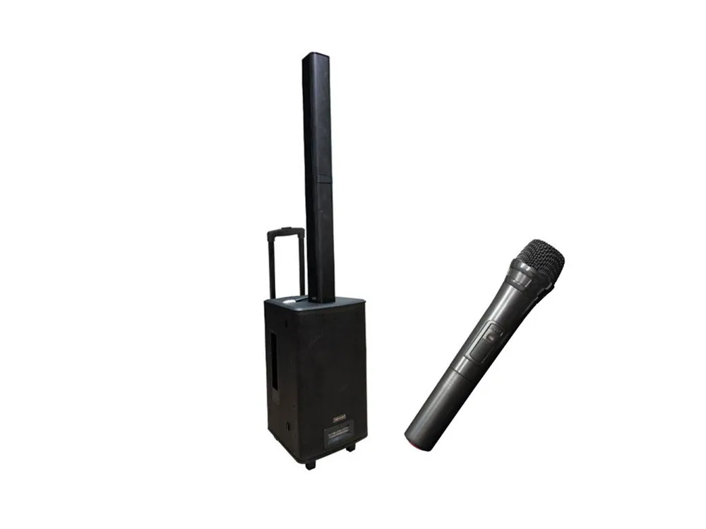 SET COMBO 1000 BAT MKII es un sistema amplificado que consta de 1 subwoofer amplificado y 2 satélites, con sistema trolley de transporte. El subwoofer integra un amplificador de 160 W y entradas de nivel de línea y micrófono. Dispone de reproductor MP3 para ofrecer la máxima versatilidad en su uso gracias a la reproducción de archivos a través del puerto USB/SD o a través de Bluetooth. También tiene un micrófono inalámbrico y los controles necesarios para ajustar el volumen master, los controles de tono y los niveles de entrada individuales. SET COMBO 1000 BAT MKII incluye una batería interna recargable para hacer mucho más portátil el sistema. Los satélites pueden fijarse en la parte superior del subwoofer.