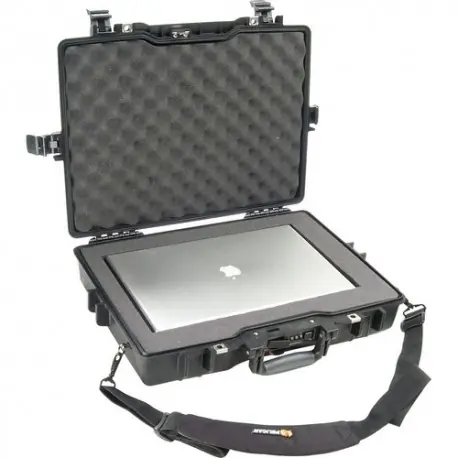 El negro 1495 caja del ordenador portátil del ordenador con la espuma de Pelican es un caso hermético, a prueba de polvo y resistente a la corrosión con un diseño delgado agregado. Está hecho de Ultra Alto Impacto polipropileno copolímero estructural que hace que sea muy resistente y duradero. Cuenta con una Válvula de despresurización para cambios de altitud o temperatura. Se puede llevar por un asa ergonómica de goma cómodo, o correa extraíble, acolchada, ergonómica hombro.