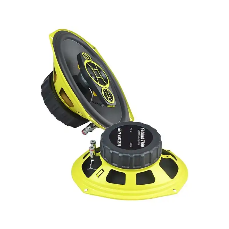 Los altavoces coaxiales Ground Zero de 7×10 de 4 vías soportan una potencia de 300 W. Tiene cono de papel reforzado con fibra, chasis de baja resonancia, tweeter de PEI de 13 mm, altavoz de rango medio de 50 mm con cono de papel.