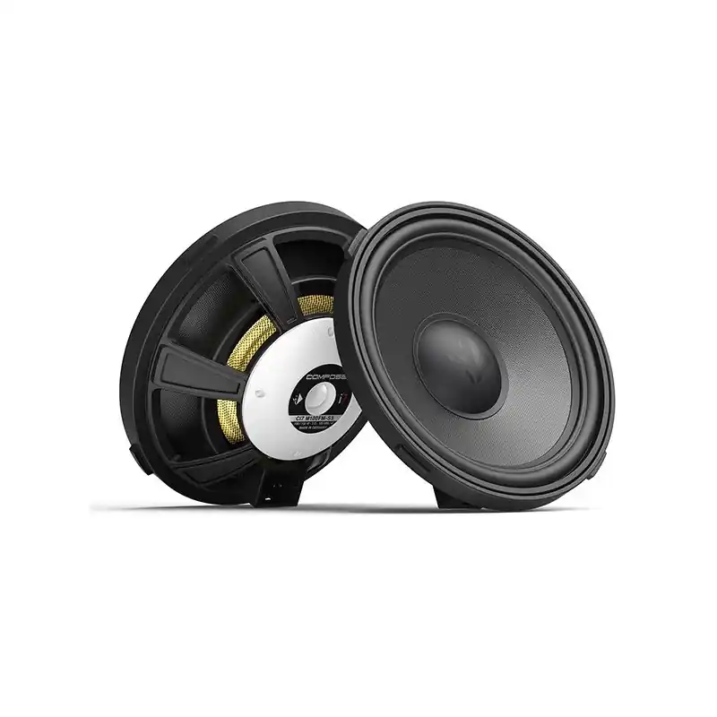 El kit de woofers de 5.25″ Helix Ci7 M100FM-S3 admite una potencia de 150 W, en este medio se utilizan solo componentes de la más alta calidad, como el cono de papel UHD (Ultra High Damping) patentado y hecho a mano, este cono está Fabricado mediante un proceso particularmente complejo y garantiza una frecuencia óptima, así como la mejor respuesta de impulso posible para un disfrute musical incomparable. El chasis esta fabricado con un compuesto de polímero de alta tecnología reforzado adicionalmente con esferas de vidrio que da como resultado una estabilidad máxima con mínima autorresonancia, sin modulación de flujo del sistema magnético y máxima resistencia a las influencias térmicas. Este chasis permite simplificar las instalaciones en espacios reducidos.