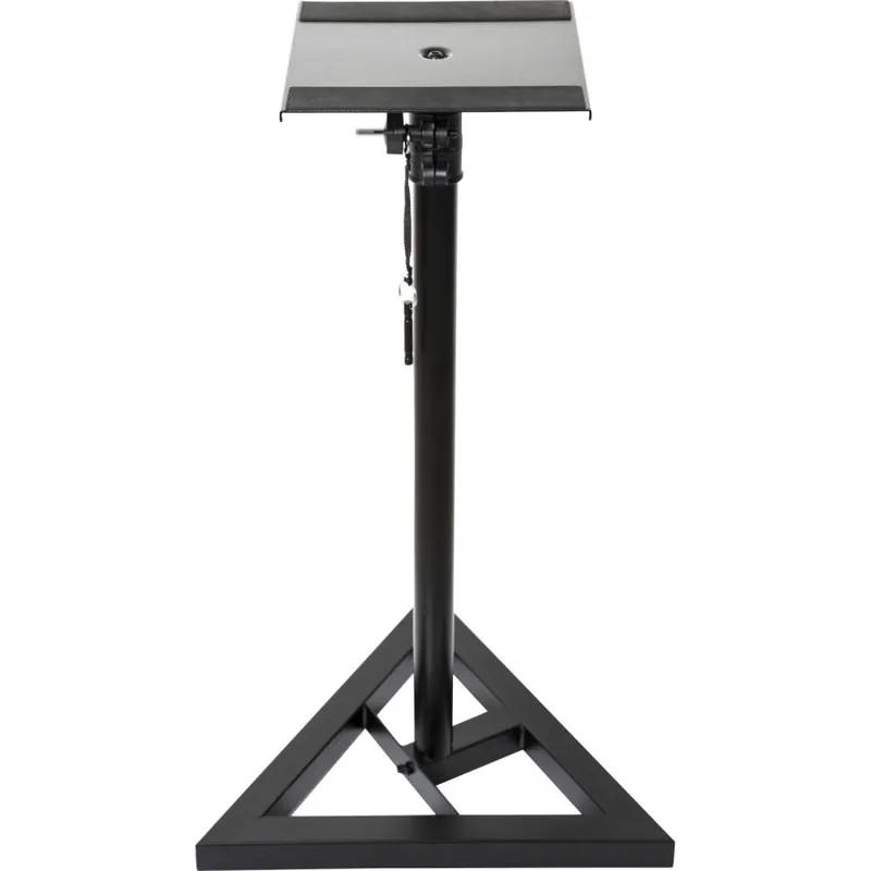 Soporte polivalente equipado con un soporte cuadrado en la parte superior, para poder soportar un bafle poco pesado, un proyector de video, un retorno de escena, un efecto de iluminación o bien otro tipo de aparato similar.