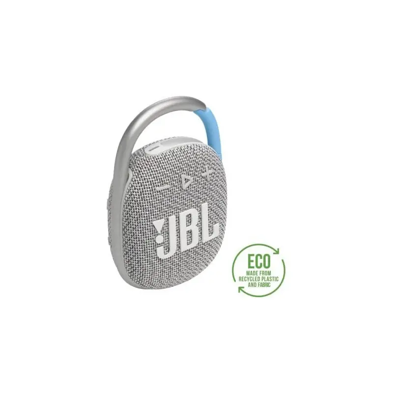 Creado con hasta un 90 % de plástico PCR (reciclado posconsumo) y con tejido 100 % reciclado en la rejilla del altavoz, el diseño del JBL Clip 4 Eco reduce significativamente la cantidad de plástico virgen utilizado a la vez que reduce la huella de carbono general del producto.