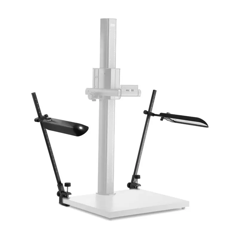 Las luces se pueden inclinar, girar y ajustar en altura. Los brazos de lámpara verticales son inclinables y con ángulo ajustable. Ancho de abrazadera de hasta 48 mm.