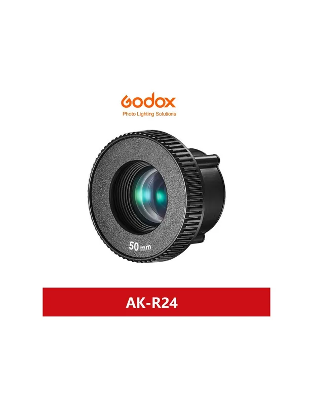 La lente Godox AK-R24 de 50mm está diseñada para usarla con el accesorio de proyección AK-R21.