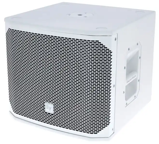- Un sonido fuerte y poderoso con una resonancia reducida de un gabinete de madera reforzado