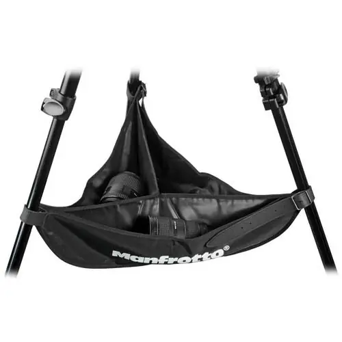 Mandil Manfrotto 166 para acoplarlo entre las patas de un trípode y usarlo como bolsa para colocar objetivos o cualquier tipo de accesorio.