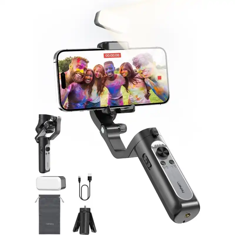 Liviano, Compacto y Plegable: El estabilizador hohem iSteady XE pesa solo 259g, siendo el estabilizador más ligero del mercado. Su diseño plegable te permite guardarlo en el bolsillo y liberar tu creatividad mientras te desplazas.
