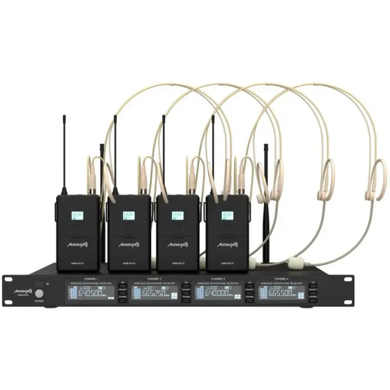 Audibax AWM 403 TD – Sistema inalámbrico de micrófonos diadema UHF 4 canales