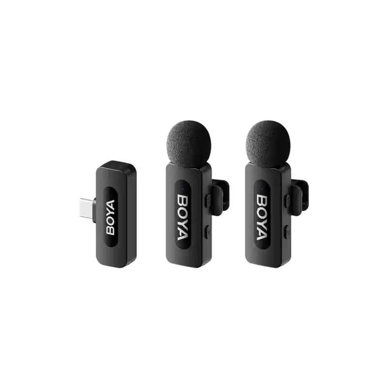 El Boya BY-V20 V2.0 incorpora dos avanzados micrófonos inalámbricos de doble canal que destacan por su facilidad de uso y calidad de sonido. Con su diseño ligero y portátil y su tecnología inteligente de cancelación de ruido, ofrece un sonido nítido y limpio dondequiera que grabes. El receptor tiene un conector USB-C, lo que te permite utilizarlo con teléfonos inteligentes que tengan una conexión USB-C. El receptor se alimenta a través del teléfono, por lo que no necesitas cargarlo. Los dos micrófonos tienen una autonomía de 9 horas. También puedes cargar el teléfono mientras grabas. Con emparejamiento automático y funcionalidad «plug-and-play», este sistema es ideal para la creación diaria de contenidos, entrevistas y debates.