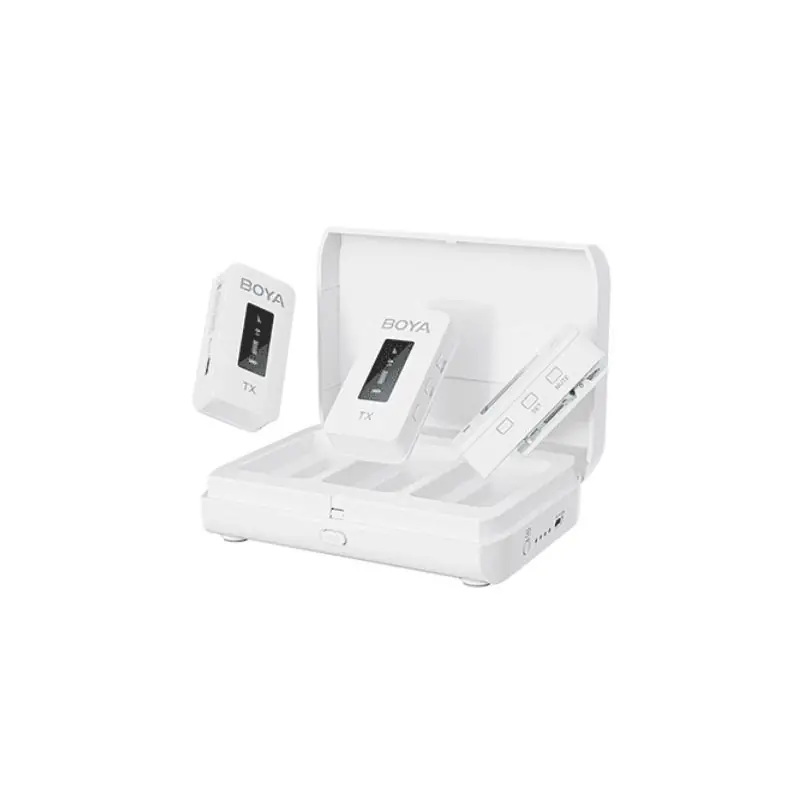 Micrófono inalámbrico BOYA BY-XM6-K2de 2,4 GHz (1xRX y 2xTX) con estuche de carga BLANCO Imprescindible (Must-Have)