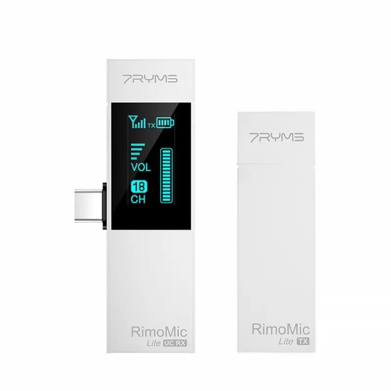 RimoMic Lite es un micrófono inalámbrico de 7Ryms dedicado a teléfonos inteligentes y tabletas con Android y conector USB-C. Ligero, compacto y fácil de usar: le permitirá grabar sonido de alta calidad para vlogs, historias o redes sociales. El conjunto consta de un transmisor con batería incorporada y un receptor conectado directamente al teléfono. Los dispositivos se comunican por radio a una distancia máxima de 30 m (dependiendo de los obstáculos del terreno). Utiliza el estándar UHF (frecuencia ultra alta) y la capacidad de seleccionar uno de los 48 canales, lo que facilita la selección de frecuencias en situaciones en las que hay otros dispositivos que admiten una conexión de radio.