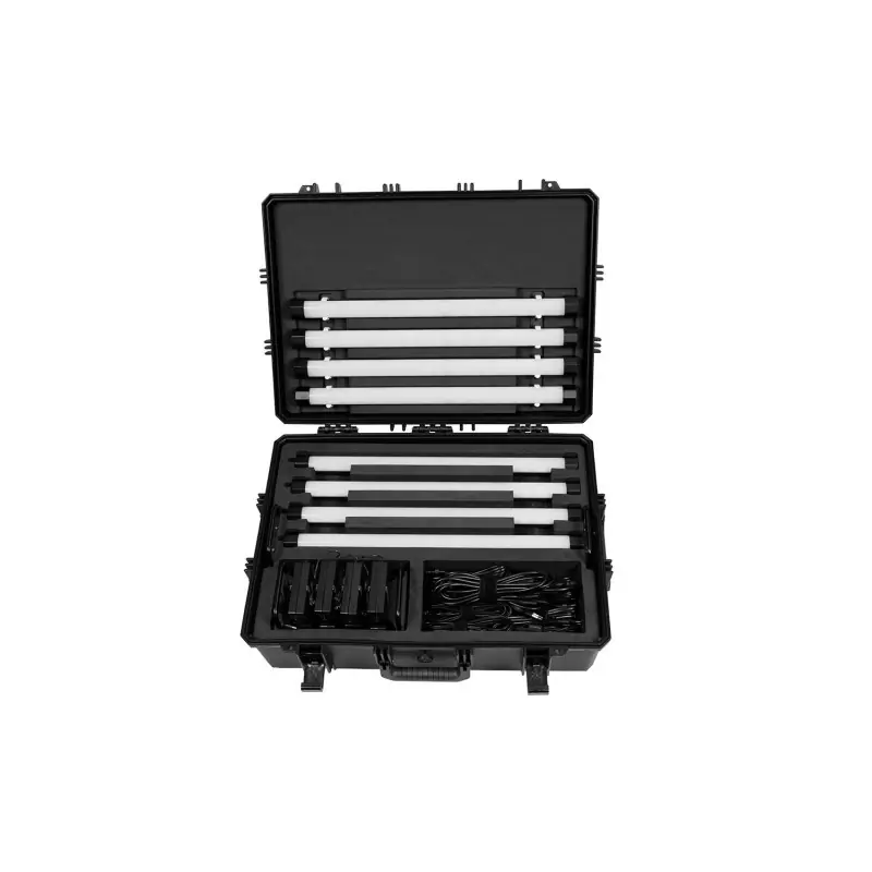 Diseñado para satisfacer la demanda desde el equipo de producción hasta el transporte accesorios entre diferentes escenas de disparo. Cada kit puede acomodar 8 tubos para una protección completa y también proporciona compartimentos individuales para adaptadores de corriente, cables de alimentación y otros accesorios compatibles.