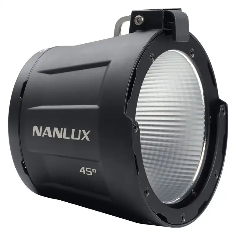 Este reflector Nanlux de 45° con montura FE para el Evoke 150C reduce el ángulo del haz y concentra la luz para intensificar la salida. Incorpora patible con el Evoke 150C. Al usarse con luces con montura FE, comparte información para optimizar el rendimiento de la luminaria. Fabricado en nailon reforzado con fibra y aluminio, tiene un exterior negro con un interior plateado y es compatible con luces con montura FM.