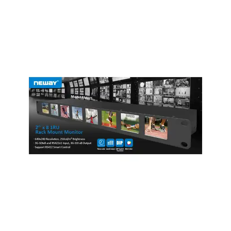 Novedad NEWAY RM02S 8 monitores 2″ en 1U, con conex HD-SDI (Full HD)