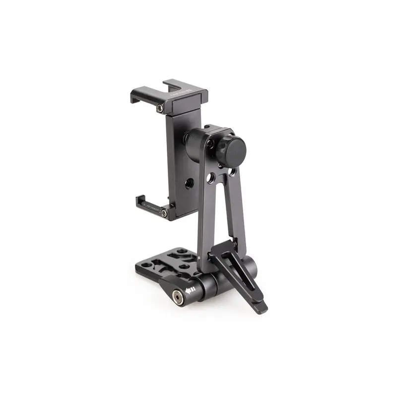 La placa de estilo Arca-Swiss incorporada se puede colocar plana para colocar el teléfono sobre una superficie plana y un pie de apoyo plegable ofrece mayor estabilidad si es necesario. Esto es ideal para todo, desde fotografía macro hasta chats de video y transmisión de sus medios favoritos.