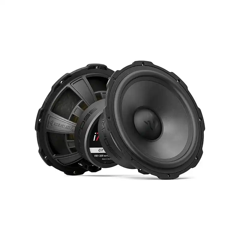 El kit de woofers de 6.5″ Helix Ci7 W165-S3 admite una potencia de 225 W, en este midbass se utilizan solo componentes de la más alta calidad, como el cono de papel UHD (Ultra High Damping) patentado y hecho a mano, este cono está Fabricado mediante un proceso particularmente complejo y garantiza una frecuencia óptima, así como la mejor respuesta de impulso posible para un disfrute musical incomparable. El chasis esta fabricado con un compuesto de polímero de alta tecnología reforzado adicionalmente con esferas de vidrio que da como resultado una estabilidad máxima con mínima autorresonancia, sin modulación de flujo del sistema magnético y máxima resistencia a las influencias térmicas. Este chasis permite simplificar las instalaciones en espacios reducidos.
