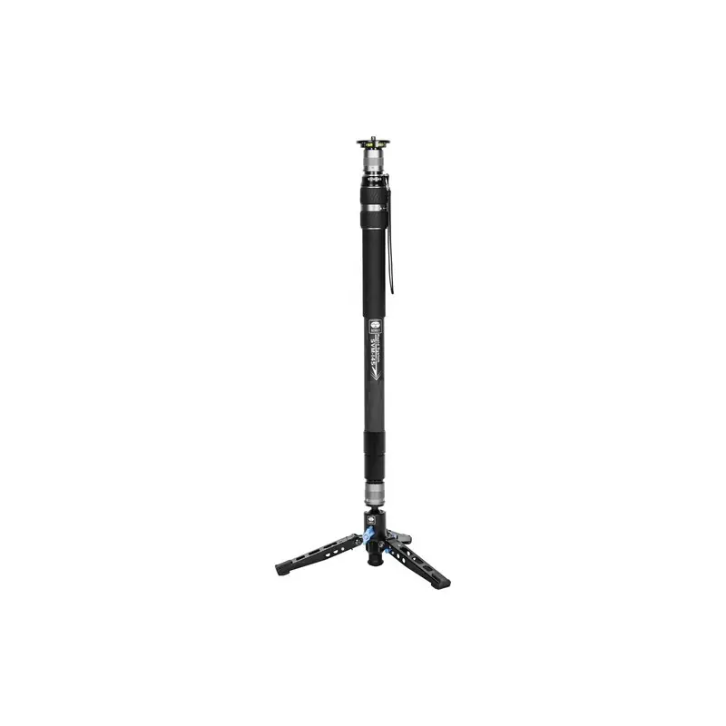 Monopié profesional ligero de fibra de carbono con sistema de altura rápida y base trípode plegable.