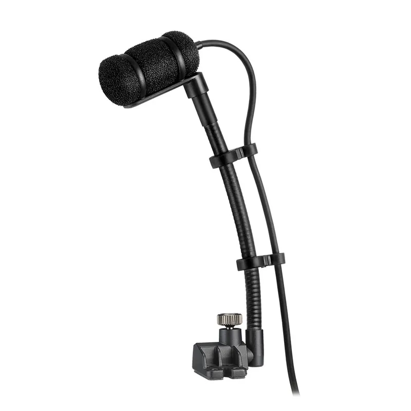 El Audio-Technica ATM350S es un micrófono de condensador de alta calidad diseñado específicamente para instrumentos difíciles de sonorizar, como acordeones. Con un sistema de montaje UniMount® y un cuello de ganso flexible de 5 pulgadas, este micrófono ofrece una captura de sonido precisa, bien equilibrada y con excelente aislamiento, incluso en situaciones de alto SPL. Su diseño compacto y robusto lo convierte en una herramienta indispensable para músicos que buscan un rendimiento impecable en cualquier escenario.