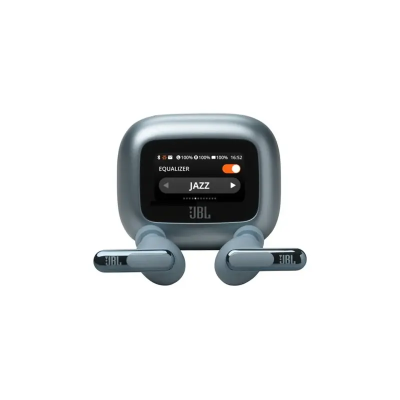 Puedes personalizar todos los aspectos de tus auriculares JBL Live Beam 3 con la pantalla táctil de 1,45 pulgadas de tu Smart Charging Case™. La pantalla te ofrece un control total del sonido en cualquier dispositivo —portátil, televisor, smartphone o tableta portátil—, sin necesidad de acceder a la aplicación JBL en tu smartphone.