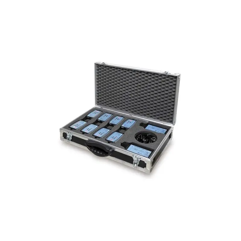 Las petacas inalámbricas WBP-202 se pueden suministrar instaladas en un maletín flight-case «WBFC-202″ con alojamiento para dos cargadores WBPC-200 y para ocho petacas inalámbricas.