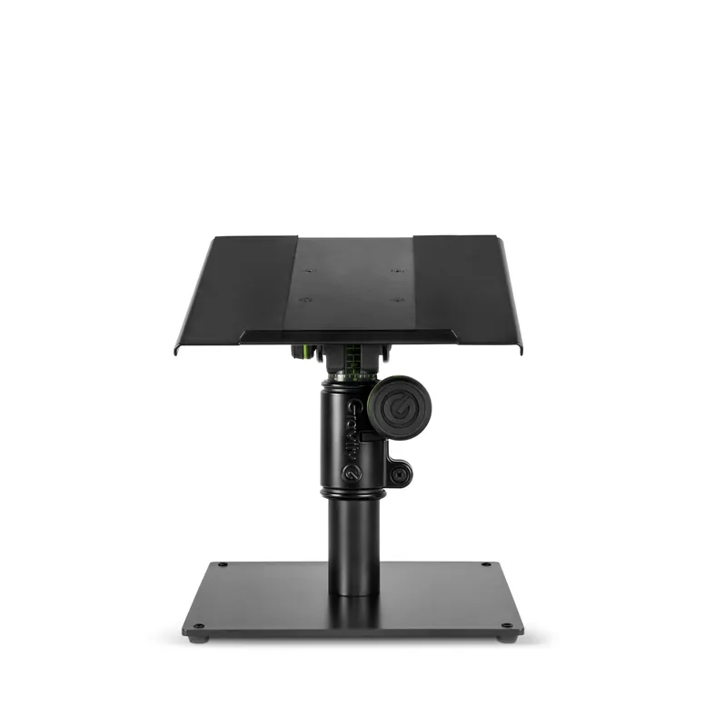 El correcto posicionamiento de los monitores tiene una influencia decisiva en el sonido y en la percepción de la mezcla. Pero cuando se tiene un estudio en casa, no siempre hay suficiente espacio para colocar los monitores de estudio con los soportes adecuados al lado de la mesa. El SP 3102 de Gravity es la solución a este problema. Se trata de un soporte versátil de acero texturizado que cabe en casi cualquier escritorio. La longitud lateral de su base maciza tan solo mide 25 cm. Puedes poner cajas de monitores que pesen hasta 25 kg a la altura que quieras, así como girarlas 360° en horizontal e inclinarlas hasta 15° gracias al relleno de EVA y a la protección contra vuelco. Por lo tanto, la colocación de los monitores de estudio dejará de ser un obstáculo. Además, los anillos G de colores son un claro elemento de diseño y se pueden cambiar fácilmente en cuestión de segundos. Con el producto ya viene incluido un juego de anillos negros