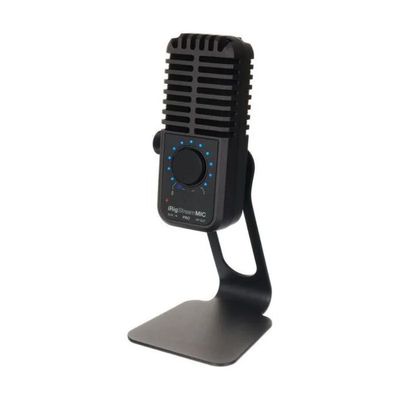 El micrófono de condensador IK MULTIMEDIA IRIG STREAM MIC PRO combina la funcionalidad de un micrófono y una interfaz de audio. Permite la conexión en dos modos: 2 entradas/2 salidas para un uso estándar y 4 entradas/2 salidas para un modo multicanal. Es perfecto para capturar audio profesional y transmitir en diversas plataformas con facilidad.
