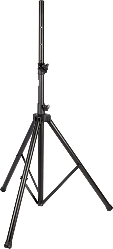 SOPORTE PARA ALTAVOZ (PA) Soporte altavoz tipo trípode con carga máxima de 50 Kg. Fabricado en aluminio. Acabado negro. Altura: 1m-1,8m. Peso 2,5 Kg. (6 ud por caja)