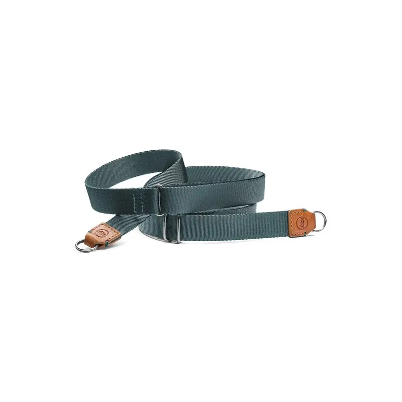 Esta correa de transporte Leica en color oliva y burdeos, diseñada para la cámara digital D Lux-8, es moderna, práctica y se fija fácilmente a las asas de la cámara mediante anillos de conexión de metal. En cada extremo de la correa se encuentran detalles de cuero con logotipos Leica grabados. La longitud de la correa se puede ajustar de 43,3″ a 53,1″ y tiene un ancho de 0,79″.