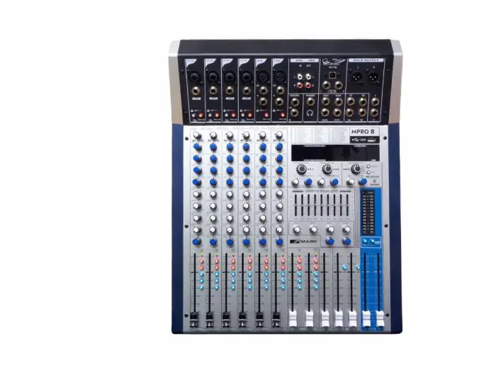 MPRO 8 integra un DSP de 99 efectos, así como interfaz USB/BT para su utilización con ficheros de audio externos. Sus 4 envíos auxiliares y conexión de pedalera que le permite conectar varios dispositivos externos. Además, otro puerto USB adicional permite utilizar el mezclador como tarjeta de sonido al conectar a un PC.