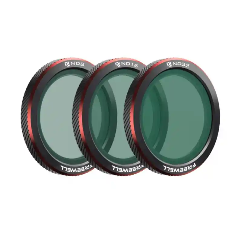 Filtros ND8, ND16 y ND32 para el control de la exposición en diferentes condiciones de luz.