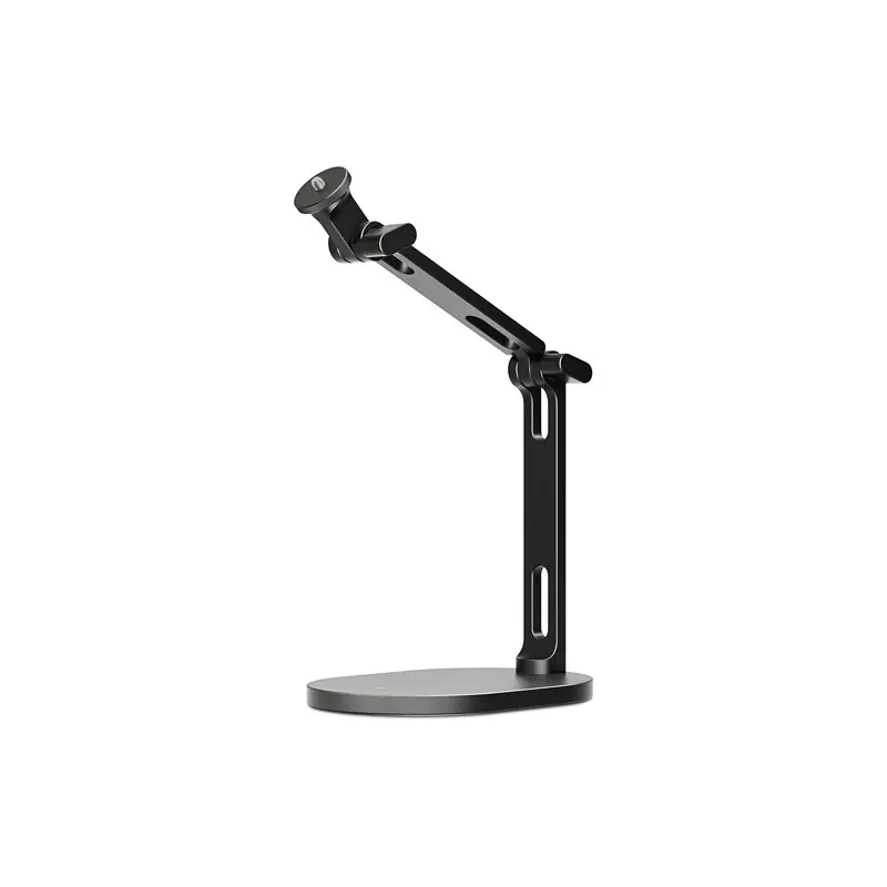 El DS2 Brazo de Estudio de Sobremesa es la solución perfecta para aquellos que necesitan posicionar de manera precisa su micrófono, cámara, smartphone, luz u otros accesorios en su escritorio. Su diseño compacto y su base pesada eliminan la necesidad de usar abrazaderas o puntos de montaje, lo que permite colocarlo fácilmente sobre cualquier superficie plana.