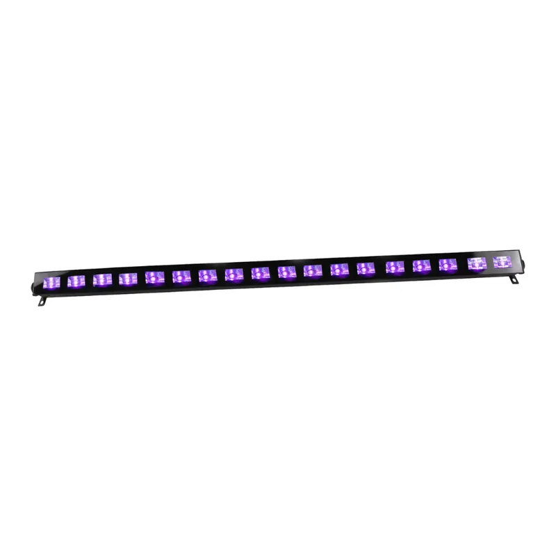 - Potente Iluminación UV: Con 18 LED UV de 3W cada uno, la IBIZA LIGHT LED-UVBAR18 ofrece una luz negra intensa que realza los colores fluorescentes y crea un ambiente mágico y enigmático.