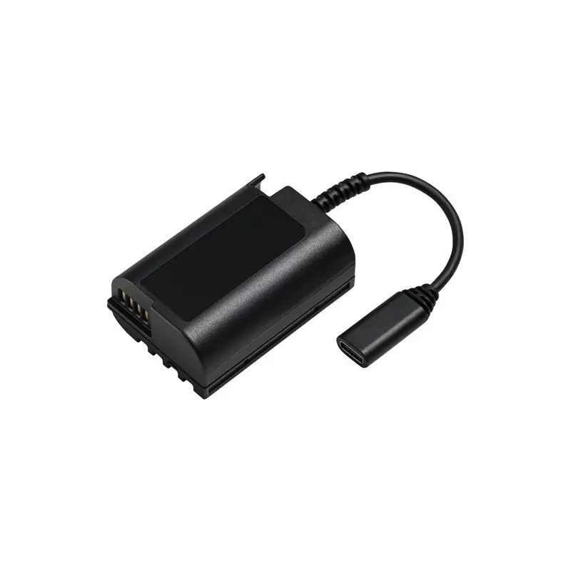 El acoplador de CC DMW-DCC18, diseñado para la cámara sin espejo Panasonic Lumix DC-GH7, se utiliza para reemplazar la batería interna y alimentar la cámara con corriente alterna para sesiones de grabación más prolongadas e ininterrumpidas, especialmente cuando se utiliza el puerto USB-C de la cámara. Para usar este acoplador de CC, se requiere el cable adaptador de corriente alterna DMW-ACC11, disponible por separado. El adaptador de corriente es necesario cuando se graba en un SSD USB y este acoplador es necesario cuando el puerto USB está ocupado.