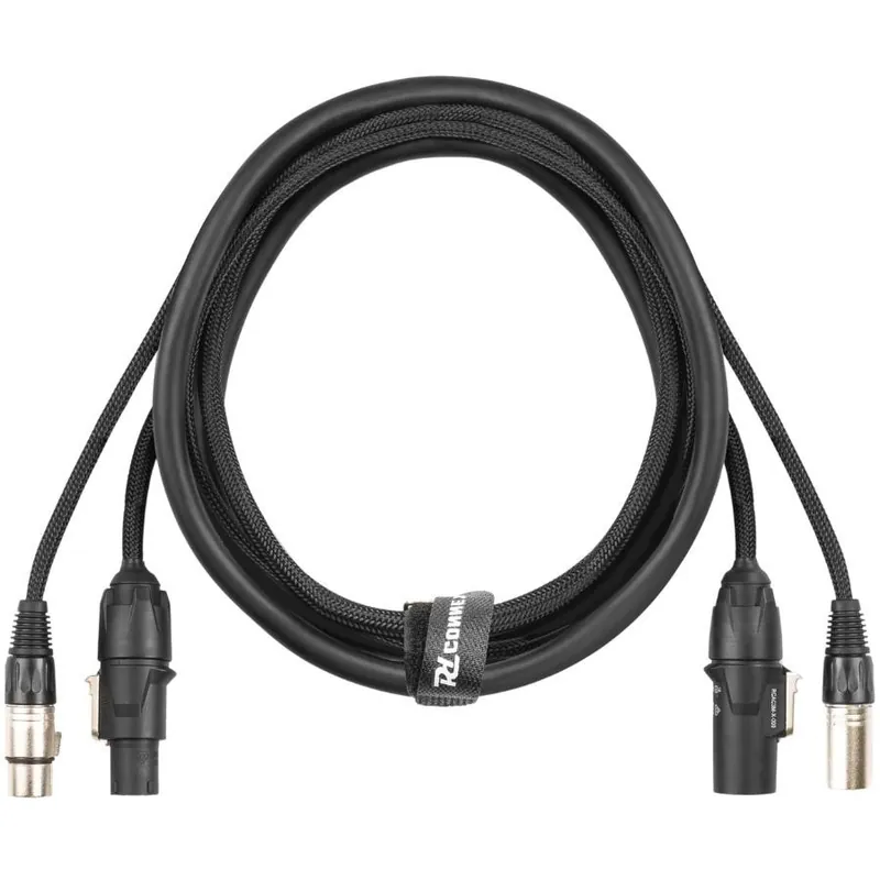Este cable combina señal DMX y alimentación eléctrica, lo que lo hace perfecto para conectar efectos de iluminación profesionales.