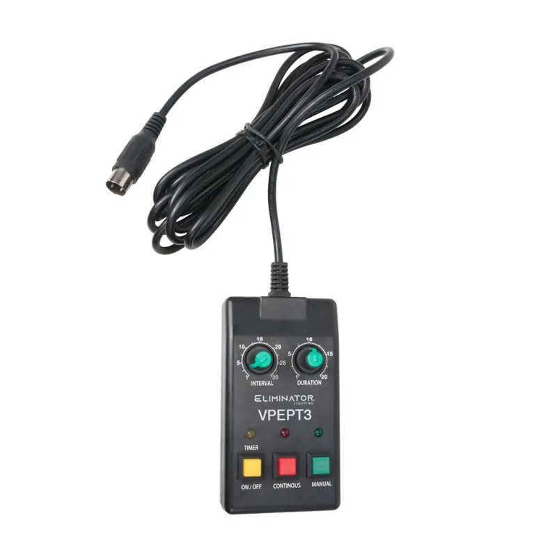 El ELIMINATOR VPEPT3 MANDO DISTANCIA VF1100 / VF1300 es un control remoto temporizador opcional que se adapta perfectamente a las máquinas de niebla VF1100 EP y VF1300 EP. Con este control, puedes programar fácilmente la duración de la salida de niebla, ofreciendo versatilidad y control total sobre tu equipo de iluminación en escenarios y actuaciones en vivo.