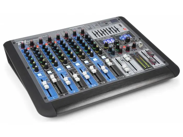 El PDM-S1204 dispone de múltiples entradas que abren múltiples posibilidades para conectar (una mezcla de) micrófonos, instrumentos y otras fuentes de audio. Entre otras cosas, el mezclador dispone de 6 conexiones de micrófono, 4 entradas de línea mono y 4 entradas de línea estéreo. La señal de los equipos de audio conectados puede utilizarse para lograr una mezcla final perfecta. El volumen de cada canal es ajustable para equilibrar las fuentes conectadas. Además, cada canal dispone de un ecualizador de 3 bandas que ajusta los agudos, medios y graves. El DSP (procesador digital de sonido) integrado tiene 256 efectos que se pueden activar fácilmente. A continuación, se puede ajustar el nivel del efecto elegido para cada canal. El botón de encendido/apagado (encendido) permite encender o apagar fácilmente un canal. La función Solo permite al técnico de sonido escuchar el canal a través de los auriculares, incluso cuando el fader está cerrado.