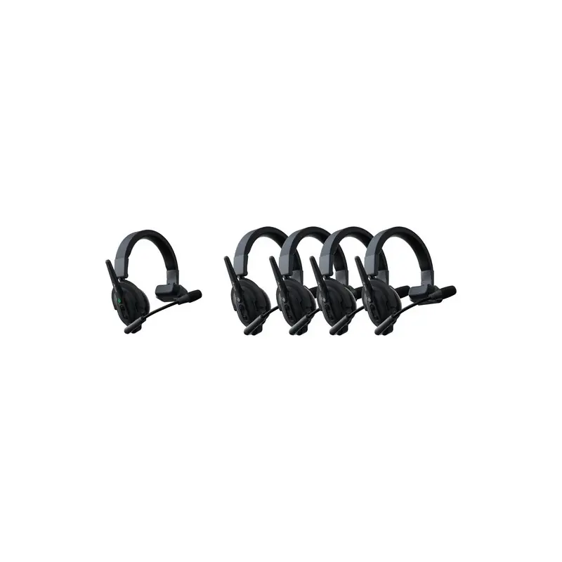 Los auriculares cuentan con fácil emparejamiento, reconexión automática y cancelación de ruido. El anfitrión puede transmitir señales de intercomunicación a hasta ocho auriculares remotos.