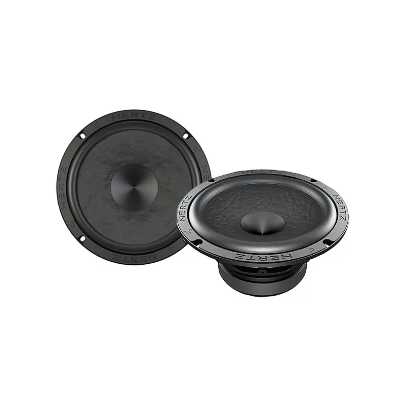 El midwoofer Hertz SV 200 L de 8″ de la serie SPL Show están diseñados para ofrecer un rendimiento superior en términos de capacidad térmica y mécanica. Este altavoz presenta una bobina móvil de cobre puro alojada en un formador KSV, un imán de ferrita de gran tamaño, la membrana es de papel ultraligero con fibras de algodón y emplea la tecnología V-Cone.