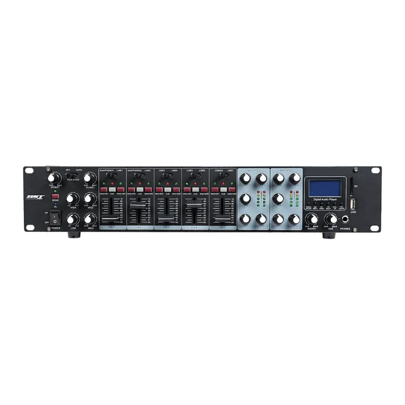 Aprovecha la versatilidad del BST MX56U Mixer / Matrix con su reproductor USB/MP3 y su matriz de 5×2. Disfruta de la libertad de asignar cualquier entrada de línea o micrófono a cualquier salida. Además, cuenta con funciones como talkover en el micrófono 1 y efecto de eco para mejorar tus mezclas. Un equipo imprescindible para instalaciones de sonido profesional.