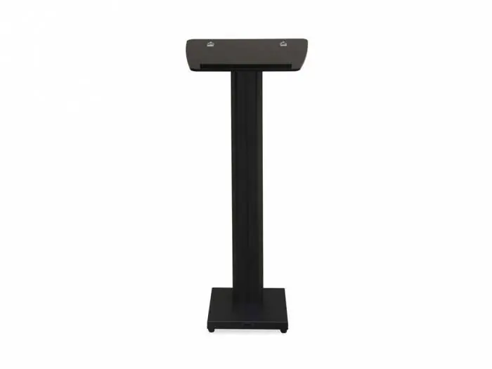 Atril de lectura con una base firme y un soporte para su uso como lector. Su construcción en aluminio y color negro o blanco (a elección), permite integrarlo en una sala de conferencias, showroom, etc. Incorpora conectores para lámpara y micrófono.