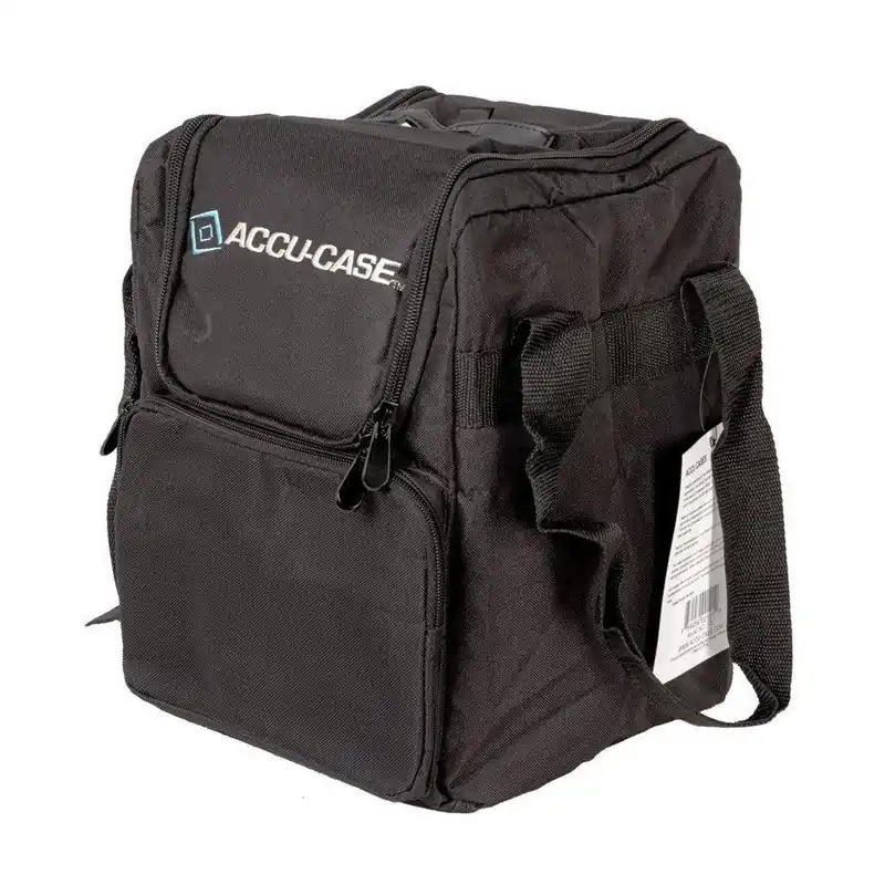 Bolsa blanda de ACCU-CASE para guardar tus aparatos y dispositivos de audio e iluminación. El maletín tiene un bolsillo principal con cremallera y bolsillos adicionales para varios accesorios.