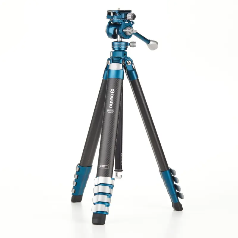 El trípode de fibra de carbono CyanBird con cabezal panorámico 2 en 1 FS20PRO de Benro es ideal para viajes y te acompañará dondequiera que tu creatividad te lleve. Con un elegante diseño en azul océano, este trípode ligero y versátil es perfecto para fotografía, vídeo y creación de contenido. Tiene una capacidad de carga de 4.4 kg y se extiende hasta una altura de 152 cm, aunque se pliega fácilmente a tan solo 44 cm, lo que lo hace ideal para cualquier mochila o bolsa de cámara. Las patas ligeras de fibra de carbono tienen una forma más plana que las patas redondas tradicionales para proporcionar rigidez y reducir el tamaño.