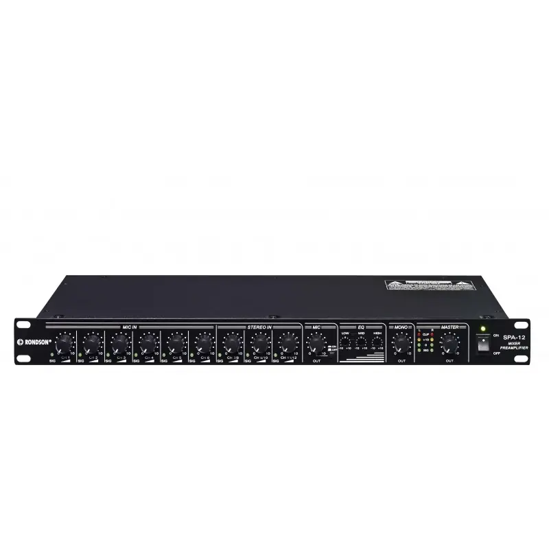 El Rondson Preamplificador Mezclador con 9 Entradas Micrófono / Línea está diseñado para entornos donde la versatilidad y la calidad de audio son esenciales. Con múltiples opciones de conexión y un diseño robusto, es la solución ideal para salas de conferencias, auditorios, estudios y aplicaciones de instalación fija.