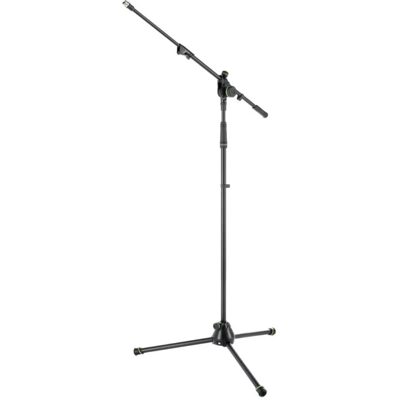 Las giras y los eventos se caracterizan por tener que trabajar en condiciones difíciles y con poco tiempo. Los montadores lanzan los soportes de micrófono de aquí para allí y no los tratan con mucha delicadeza. Por eso, el soporte de micrófono con jirafa telescópica de la serie Touring de Gravity se ha diseñado para ser extremadamente resistente. Con un tubo de acero especialmente robusto y tres patas plegables. La base y la fijación de la jirafa son de zinc de fundición indestructible. La jirafa se puede ajustar entre 51 y 88 cm. El contrapeso atornillado tiene una contratuerca de diseño especial para pinzas de micrófono. Para que el soporte aguante durante más tiempo el intenso uso en las giras, las perillas macizas de metal son imperdibles. Además, el soporte de micrófono se monta y desmonta más rápidamente. La jirafa se enclava en un abrir y cerrar de ojos, con solo girar el tornillo de ajuste 3/4 de vuelta. También es fácil ajustar la altura, y se puede fijar en forma de triángulo muy rápidamente con el manguito de apriete antideslizante.