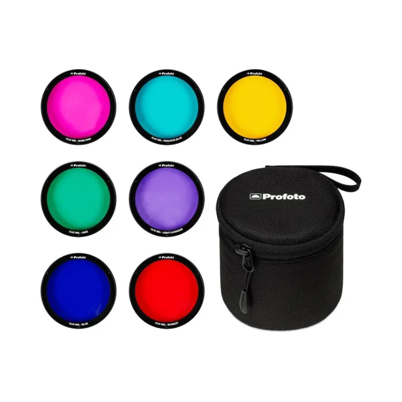 El Kit Profoto Clic Color Effects es perfecto para los fotógrafos con un lado mas artístico ya que incluye un total de 7 filtros de colores diferentes que pueden cambiar por completo la composición de una escena. Estos filtros son compatibles con la serie A de flashes Profoto y se acoplan mediante un cierre magnético.